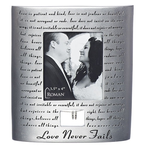 Roman, Inc. Add to Cart Love Is Patient 4x6 Frame MSRP: Was: Now: $21.95 6.5"H Mr & Mrs 'Love is patient, love is kind' 4x6 frame
